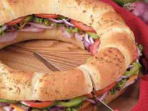 BJs.com - BJ's Wholesale Club Wellsley Farms ® Sandwich Ring. Honey Ham, Smoked Turkey Breast, Swiss Cheese, shredded Iceberg Lettuce and sliced Tomato (Serves 12 - 15). $27.99. Qty. Dietz & Watson ® Sandwich Ring. Dietz & Watson Virginia Baked Ham, Black Forest Turkey, Colby Jack Cheese, shredded Iceberg Lettuce and sliced Tomato (Serves 12 - 15). $37.99.